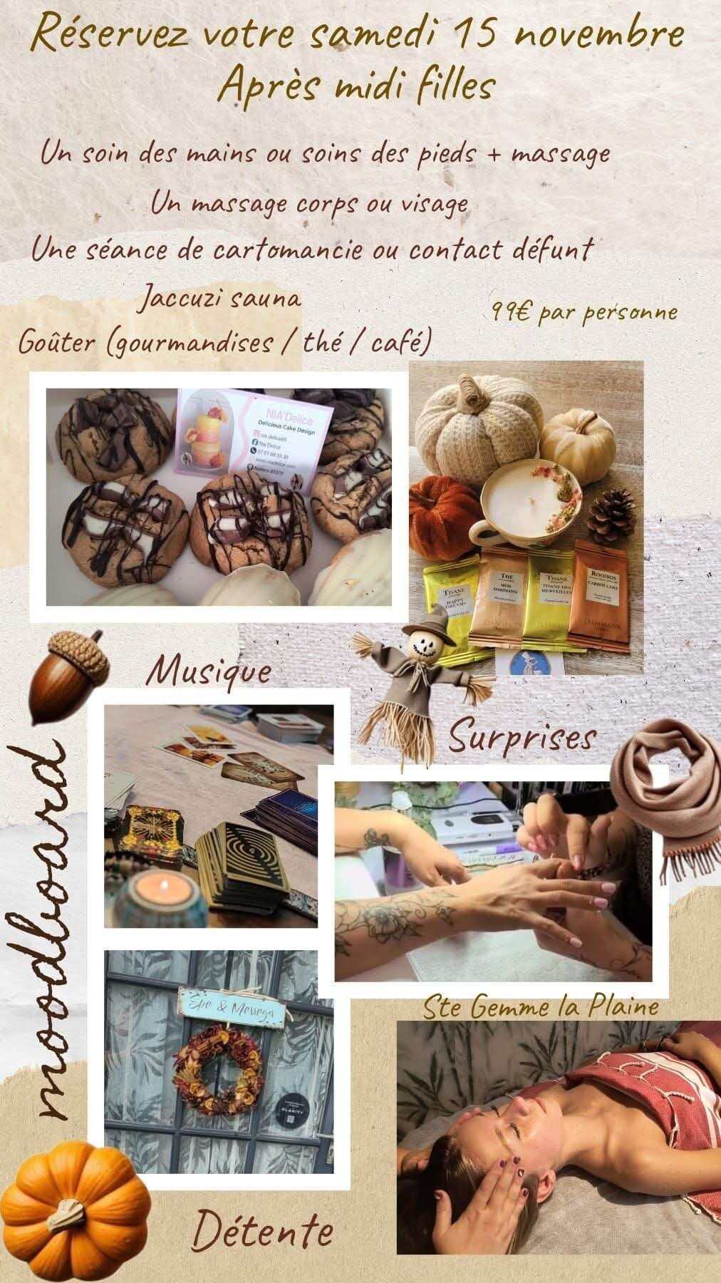 Tout au long de la soirée je vous proposerai des massages crâne/visage/nuque/ épaules.